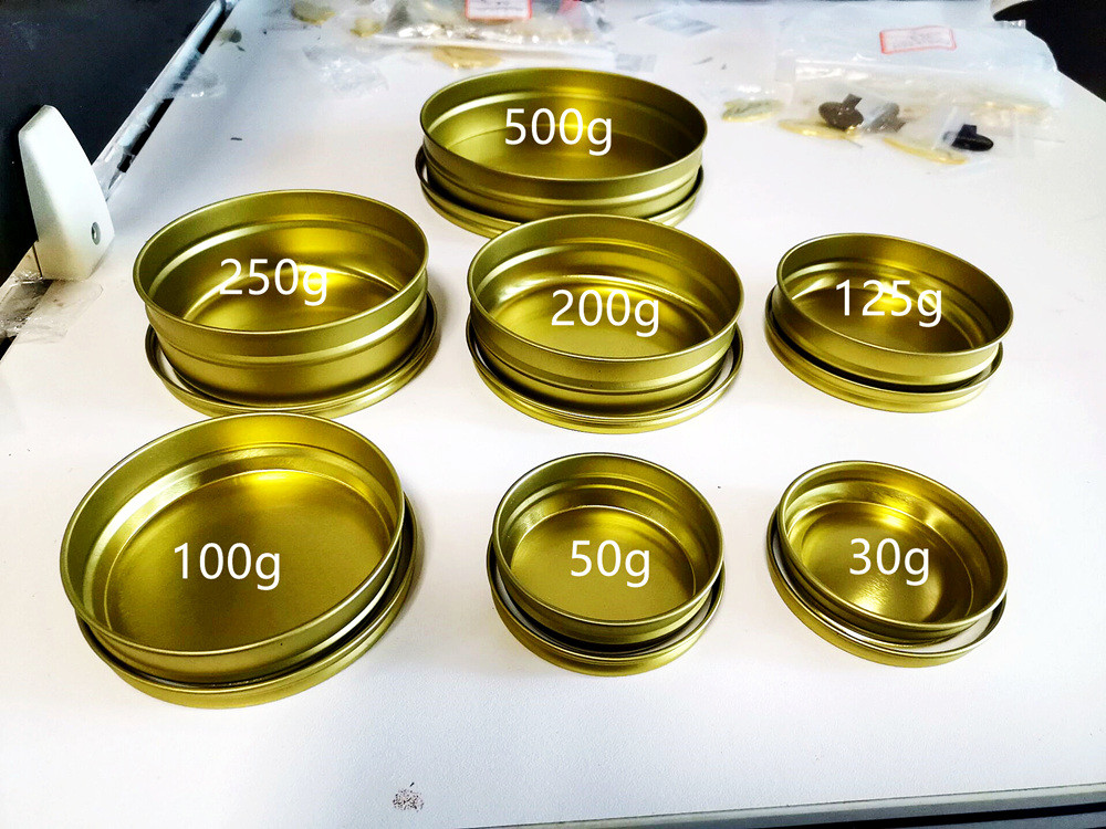 10g, 15g, 30g, 50g, 100g, 125g, 250g, 500g